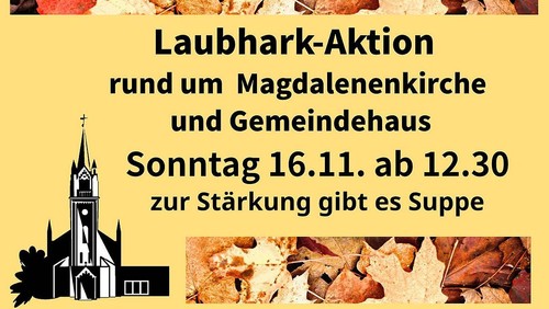 Laubhark-Aktion rund um Magdalenenkirche und Gemeindehaus - zur Stärkung gibt es Suppe